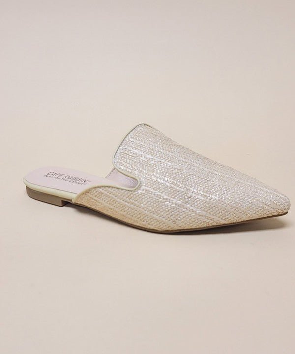 WOMENS, POINTED, CLOSE TOED OPEN BACK, SLIDE IN FLAT, CASUAL